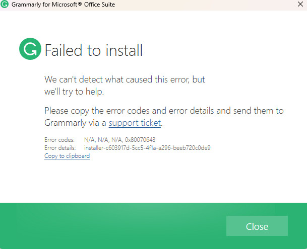 [SOLVED] Grammarly word add-in: failed to install